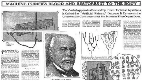 1914年,《紐約時報(New York Times)》報道了他的“人工腎臟”