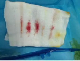 M20引導下,抽吸針找到右側宮角處再次清掃