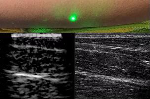 臨床應(yīng)用的無(wú)創(chuàng)超聲,要求探頭與人體皮膚直接接觸來(lái)向身體傳導(dǎo)高頻振動(dòng)的超聲波。但是,有一些特定的患者卻在超聲檢查時(shí)受到限制,比如兒童、燒傷患者和敏感皮膚患者等。而近日麻省理工學(xué)院的研究人員證明,確實(shí)有可能使用激光在不接觸皮膚的前提下對(duì)患者進(jìn)行超聲波掃描。
