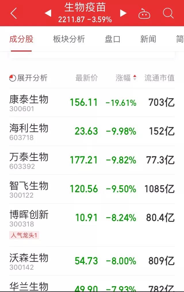 A股疫苗概念遭遇重挫