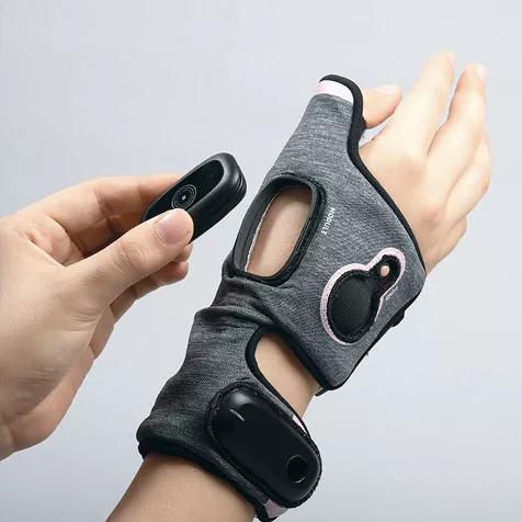 這是一款創(chuàng)新的手部保護(hù)裝置,專為慢性手部受傷及病癥設(shè)計(jì)。因受傷或者是長(zhǎng)時(shí)間保持不良姿勢(shì)工作,導(dǎo)致手部出現(xiàn)持續(xù)性疼痛,已經(jīng)成為現(xiàn)代生活中常見(jiàn)的病癥,HANDICARE 是一套針對(duì)觸發(fā)手指綜合癥的智能手部康復(fù)設(shè)備,它通過(guò)使用APP來(lái)檢測(cè)手部肌肉施加的力,進(jìn)而激活可更換的電療(振動(dòng))模塊以緩解疼痛點(diǎn)。