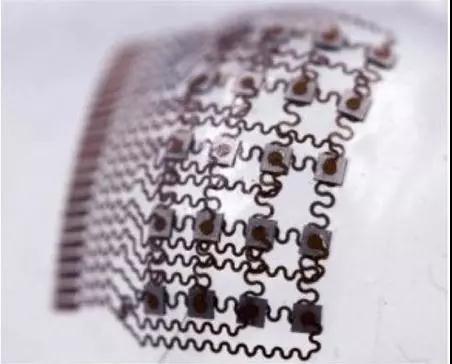 圣迭戈分校研究團(tuán)隊(duì)研發(fā)的這種貼片是一種硅橡膠薄片,薄片上是由蛇型導(dǎo)線連接的大量電子元件(也就是我們所說(shuō)的島橋結(jié)構(gòu))。每一個(gè)原件“島”都含有低壓式轉(zhuǎn)換器,當(dāng)電流通過(guò)時(shí)就會(huì)產(chǎn)生超聲波。