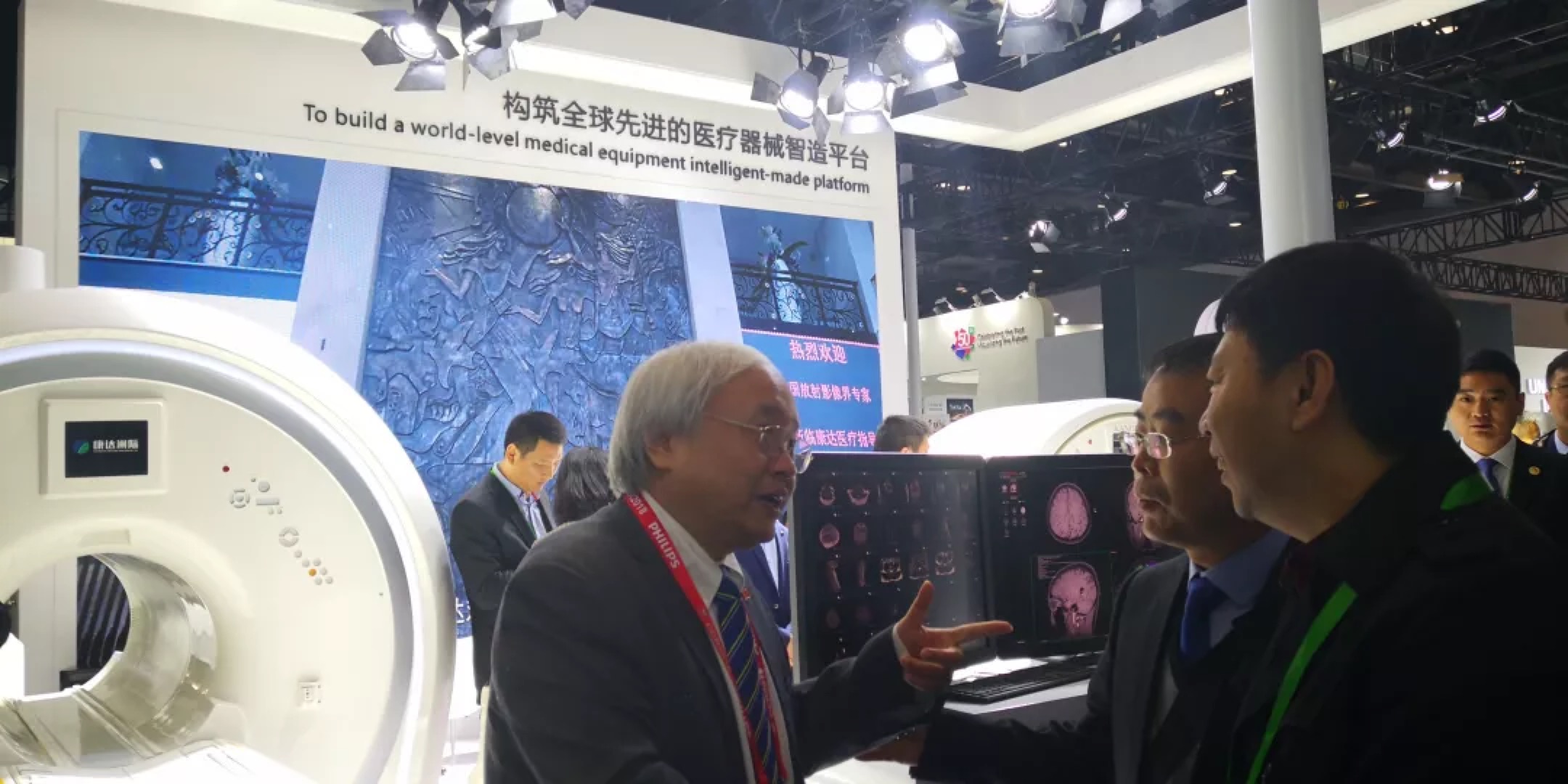 中國放射學(xué)家、中華醫(yī)學(xué)會(huì)放射學(xué)分會(huì)主任委員、北京協(xié)和醫(yī)院放射科主任金征宇一行也特意來到了康達(dá)洲際展臺(tái)。金征宇教授在聽取了康達(dá)的工作人員對(duì)康達(dá)洲際1.5T磁共振等一系列產(chǎn)品的介紹后,對(duì)康達(dá)洲際在產(chǎn)品的研發(fā)和創(chuàng)新上給予了高度肯定。