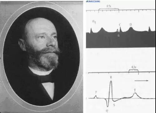 1903年,Einthoven成功地用弦線式心電圖機記錄了第一份真正意義上的心電圖,并將各波命名為P、Q、R、S、T、U波,這些命名沿用至今。這一年被稱為心電圖的公元元年,愛因托芬因因此被稱為心電圖之父。