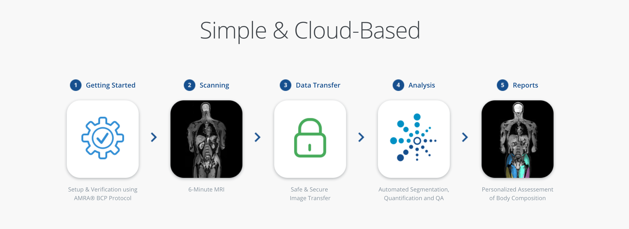 單次6分鐘MRI掃描,多次測量的自動分析,與其他成像協(xié)議和技術(shù)很好地集成。 AMRA Profiler確實需要兼容的MRI掃描儀,并且該公司與供應(yīng)商合作以確保安裝產(chǎn)品,以便接收每個獲得適當(dāng)掃描的患者的身體成分分析報告所需的交互非常少。
