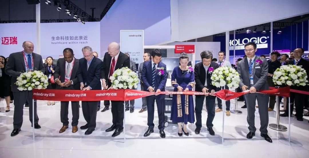 開幕當(dāng)日,四位來自美國(guó)頂級(jí)醫(yī)院的臨床工程大咖、以及中華醫(yī)學(xué)會(huì)超聲專委會(huì)副主任委員兼婦產(chǎn)學(xué)組組長(zhǎng)田家瑋教授、上海交通大學(xué)醫(yī)學(xué)院附屬瑞金醫(yī)院超聲診斷科主任詹維偉教授、邁瑞醫(yī)療高級(jí)副總裁李在文,邁瑞國(guó)內(nèi)營(yíng)銷副總經(jīng)理黃鵬程等共同出席了智能高端婦產(chǎn)超聲女媧 Resona 8 的剪彩儀式。