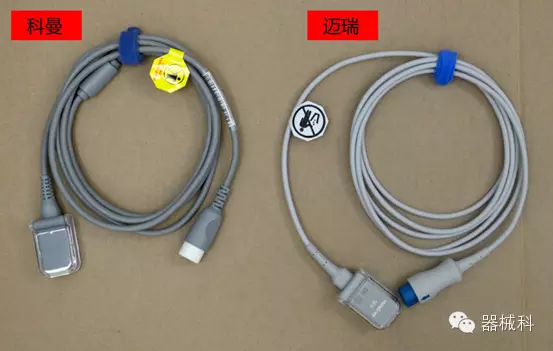 兩家使用的血氧探頭有明顯的區(qū)別??坡目瓷先ジ~瑞的設(shè)計看起來新超大氣,顏色更白。不知道用久了,會不會發(fā)黃變色。看了一下探頭的發(fā)光管和接收管,居然是一樣的,從發(fā)光管和接收管的外形上看用的都是OSI的,看來在這一點上大家都比較認可這家頂級老牌生產(chǎn)的管子。用手指感受了一下兩家的探頭,邁瑞的選用的材料比較柔軟,在感受上比較舒適,科曼的探頭襯墊手感上要硬朗一些,不過也不會有任何的不適。