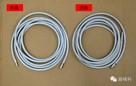 科曼采用防除顫分體夾式5導(dǎo)聯(lián)線,分纜長度為LA,RA,V導(dǎo)聯(lián)1米;RL,LL導(dǎo)聯(lián)1.6米;邁瑞采用防除顫一體扣式5導(dǎo)聯(lián),分纜統(tǒng)一為0.6米,主纜部分長度一樣。導(dǎo)聯(lián)線上的分纜,容易損壞。如果只是分纜換了,分體式只用換掉分纜就行了,而一體式只能換掉附件,減少不必要的浪費,提高使用率,節(jié)約成本。