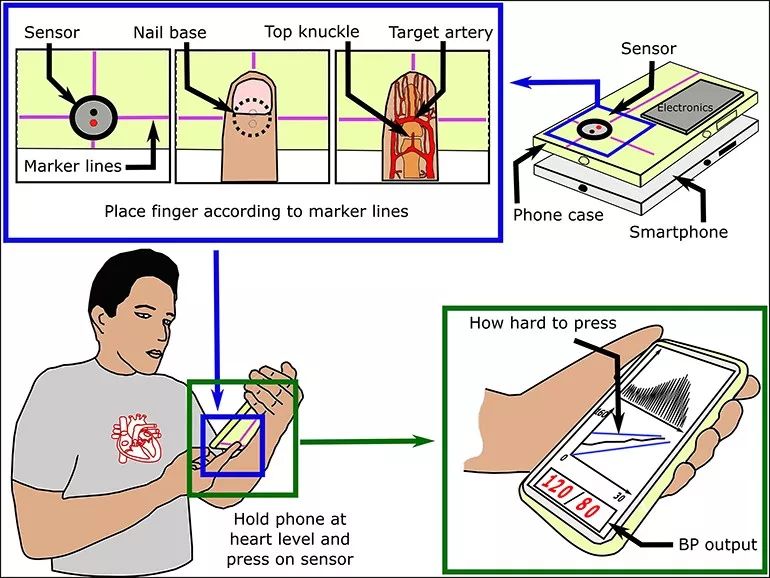 目前這項(xiàng)研究有了新的進(jìn)展,來自密歇根州立大學(xué)和馬里蘭大學(xué)的研究人員發(fā)明了一種可以集成到智能手機(jī)的血壓傳感器,只需按壓指尖即可完成血壓測(cè)量。