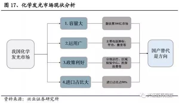 導語:此報告詳細描述化學發(fā)光行業(yè)整體情況,分析競爭格局,指出進口替代是行業(yè)發(fā)展方向。把國產(chǎn)和進口產(chǎn)品進行對比,對進口替代中行業(yè)的痛點進行闡述。在成文過程中,調(diào)研多家醫(yī)院,檢測終端及經(jīng)銷商,對一手數(shù)據(jù)進行分析,得出較切實的結論。