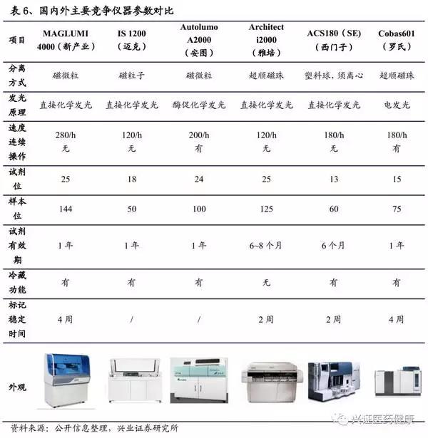 從以上進程可看出,技術到位、價格優(yōu)勢以及找準市場切入口是其完成進口替代的關鍵。發(fā)光行業(yè)與生化行業(yè)有其區(qū)別,發(fā)光本質為免疫反應,各廠家的技術平臺完全不同,為保證結果的準確性和穩(wěn)定性,將迫使檢驗人員使用同一廠家提供的試劑和分析儀。在各大醫(yī)院對于各個項目的檢查都基本專機專用,未來也很難將其開放化。所以,在發(fā)光的進口替代進程中,試劑和儀器的一體化研發(fā)是必須的。國內(nèi)化學發(fā)光龍頭企業(yè),例如,新產(chǎn)業(yè)、安圖生物、邁克生物等都具備試劑和儀器的一體化研發(fā)能力。參考生化的替代道路,5年內(nèi)將爆發(fā)大規(guī)模進口替代。