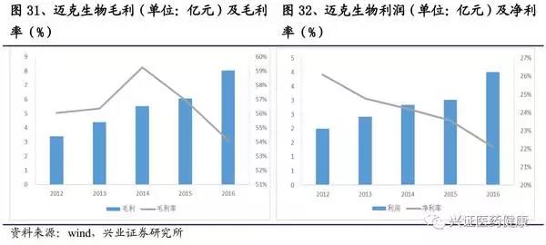 邁克2012年至2016年公司業(yè)績呈增長趨勢,2016年實現(xiàn)收入14.8億元,CAGR為24.5%,歸母凈利潤復合增速為21.2%,代理產(chǎn)品占收入的50%-60%。