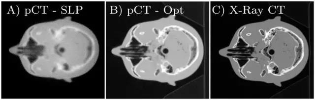 科研人員將質子CT圖像與傳統(tǒng)X線CT圖像進行了比較。盡管質子CT圖像比X線CT圖像模糊,但能夠清晰顯示質子與組織之間的相互作用。當前質子治療過程中,質子照射范圍和準確性都存在不確定性。如果使用X線CT圖像進行治療計劃制定,那么束流實際到達和釋放能量的位置會與計劃有3-5%的差異,從而損傷正常細胞;而使用質子CT,上述誤差可以降低到1%。