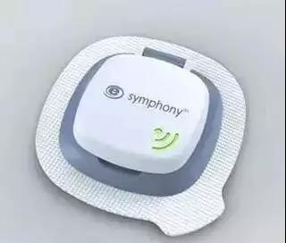 ECHO Therapeutics公司的Symphony血糖儀應(yīng)用了皮膚透析方式采集皮下組織液這一方法實現(xiàn)血糖的連續(xù)監(jiān)測?;驹硎鞘褂靡粋€電動研磨頭處理皮膚表面,將角質(zhì)層磨去,到達(dá)接近真皮的程度,形成一個大約一角硬幣大小的圓形。再利用一個電化學(xué)傳感器裝置,將皮下組織液持續(xù)吸出來,測量其中的葡萄糖濃度,得到的數(shù)據(jù)以無線方式傳輸?shù)诫娔X、顯示屏或者智能手機,該產(chǎn)品可連續(xù)采集動態(tài)血糖數(shù)據(jù),每個傳感器探頭使用壽命約24小時,主要針對住院患者使用。
