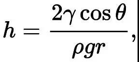 把一根細(xì)細(xì)的玻璃管的一端垂直放進(jìn)一個(gè)水盤子里,水在玻璃管里面就會(huì)因毛細(xì)作用而上升,上升的高度可以由Jurin定律來(lái)計(jì)算[4]:
