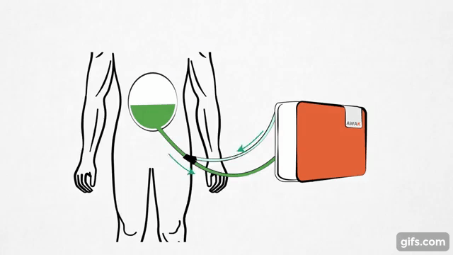 據(jù)報道,由AWAK科技公司研發(fā)的世界首個可穿戴、便攜式腹膜透析裝置,內(nèi)部使用了新研發(fā)的吸附技術,體積小巧,重量不到2公斤,方便患者隨身攜帶,隨意走動,能夠進行實時透析。